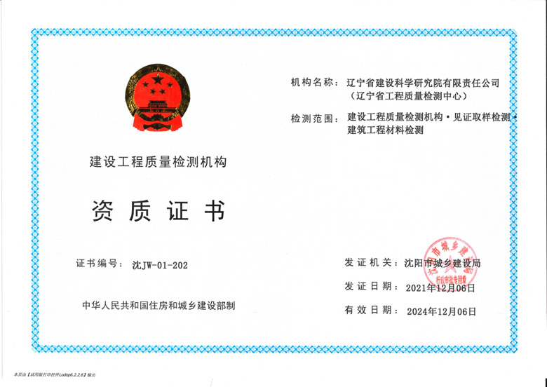 歡迎進(jìn)入遼寧省建設(shè)科學(xué)研究院有限責(zé)任公司(遼寧省工程質(zhì)量檢測(cè)中心)官網(wǎng)