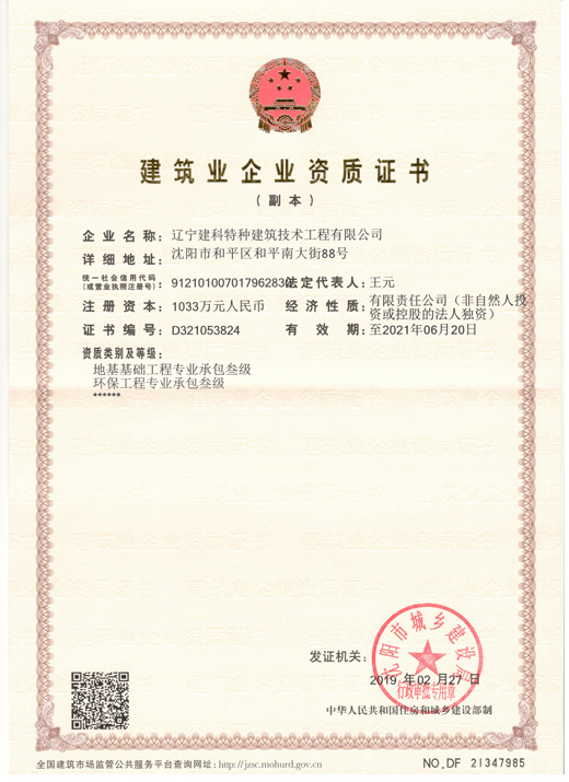 地基基礎(chǔ)工程和環(huán)保工程專業(yè)承包叁級(jí)