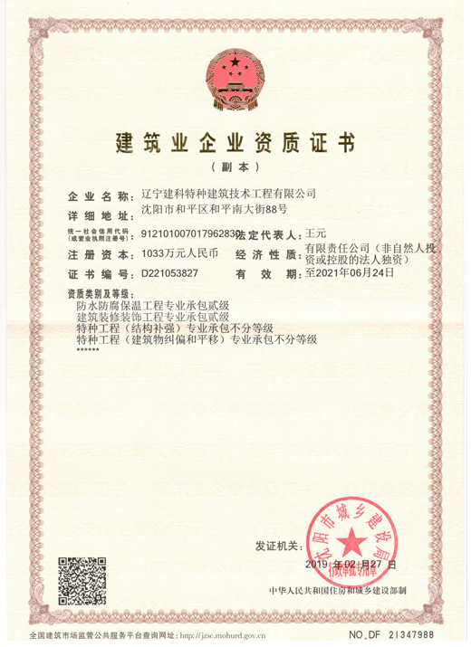 防水防腐保溫建筑裝飾裝修工程專業(yè)承包貳級(jí)