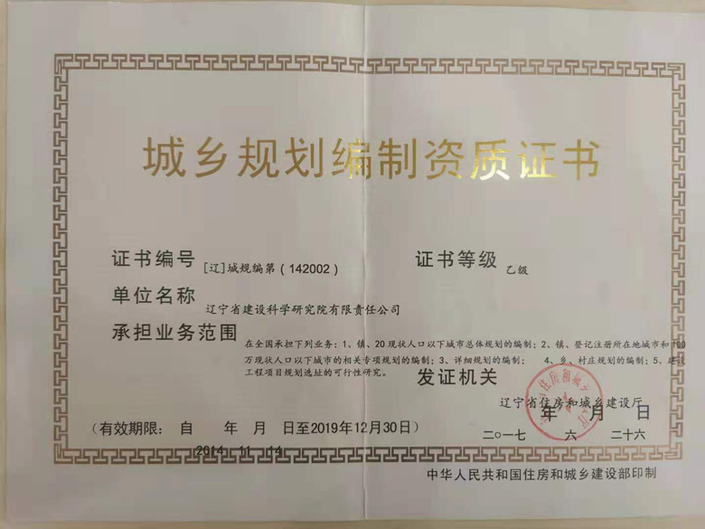 城鄉(xiāng)規(guī)劃編制資質(zhì)證書