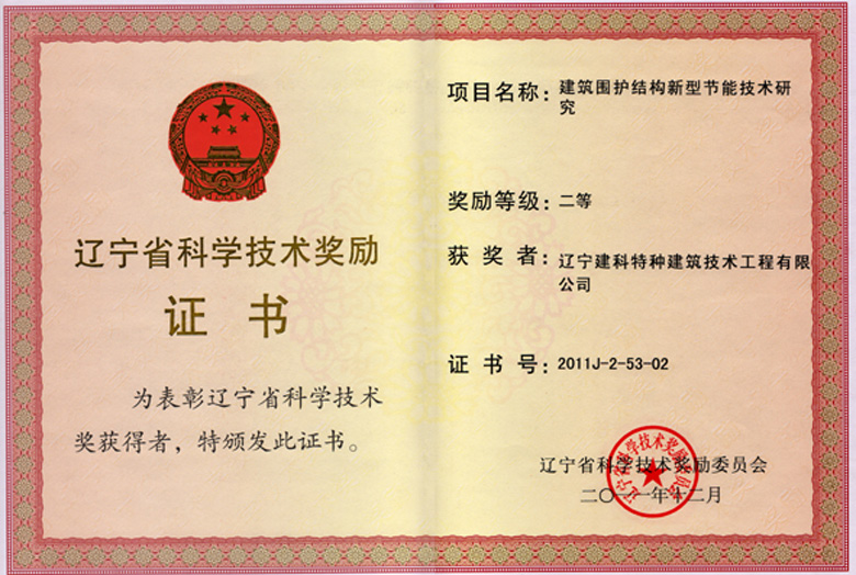 2011省二等-建筑圍護(hù)結(jié)構(gòu)院證書