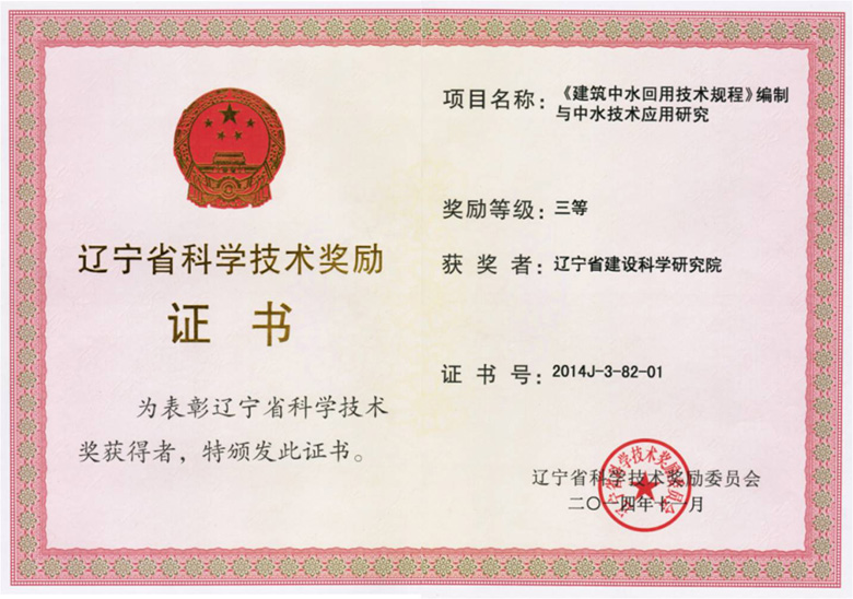 2014省三等-建筑中水回用技術(shù)規(guī)程編制與中水技術(shù)應(yīng)用研究