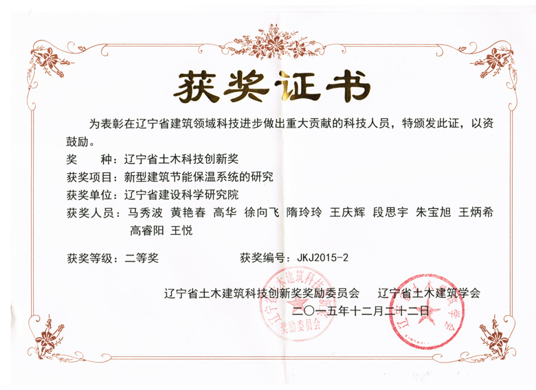 2015-遼寧省土木科技創(chuàng)新獎二等獎